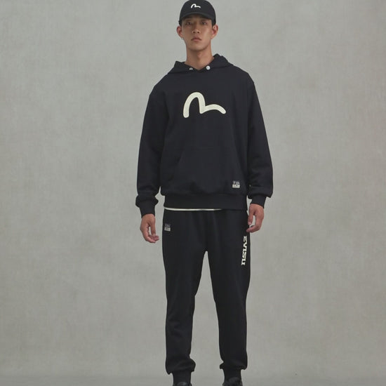 ロゴ刺繍と鶴の恩返し大黒プリント レギュラーフィットスウェットパンツ